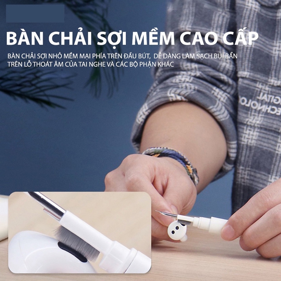 Bàn chải sợi mềm cao cấp của bút vệ sinh tai nghe 3 trong 1.