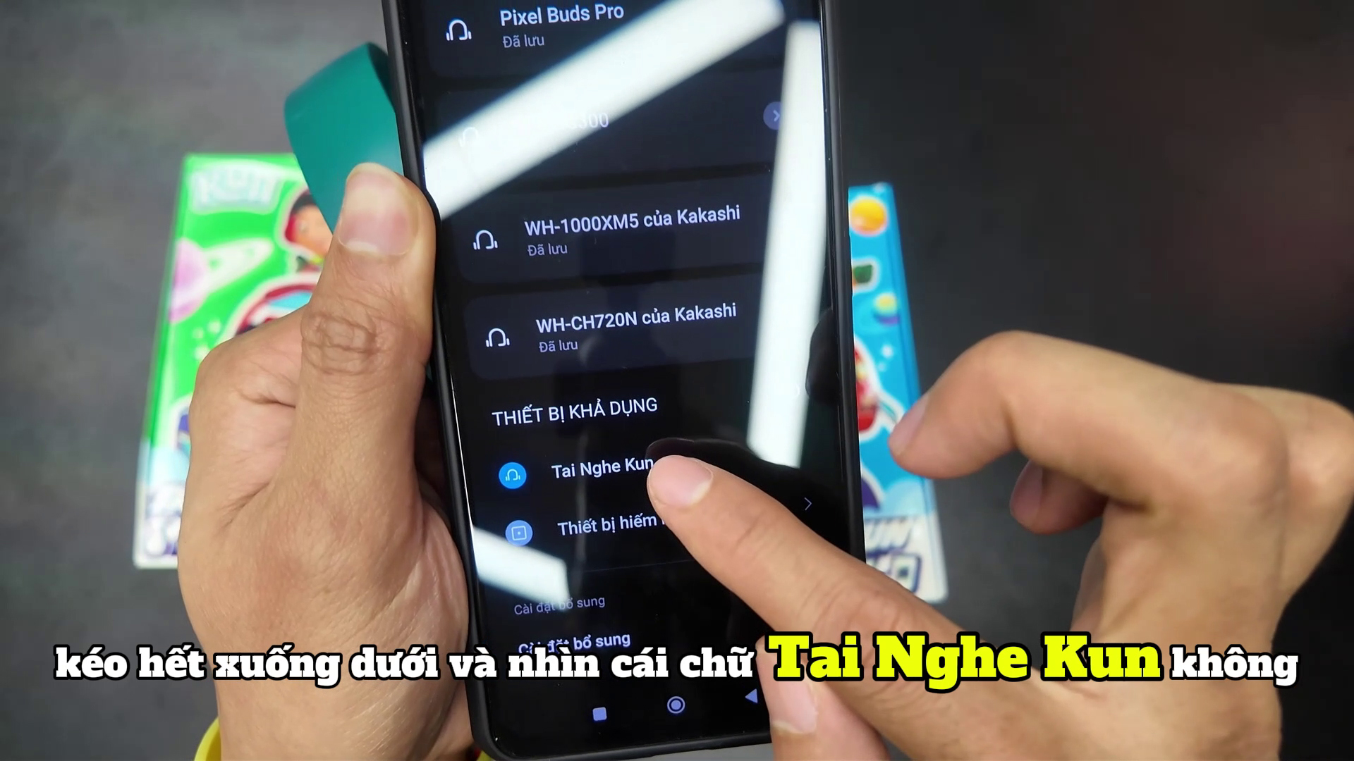 Với điện thoại Androi mở cài đặt Bluetooth trên thiết bị như hình. Sau đó tìm và chọn tên thiết bị "Tai nghe Kun Đa Chiều", nhấn vào để kết nối.