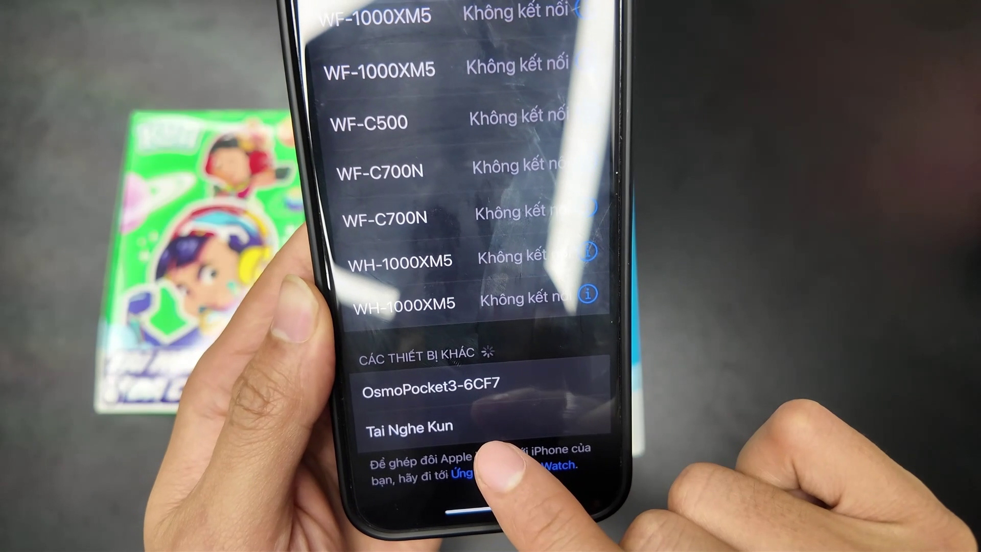 Với Iphone mở cài đặt Bluetooth trên thiết bị như hình. Sau đó tìm và chọn tên thiết bị "Tai nghe Kun Đa Chiều", nhấn vào để kết nối.