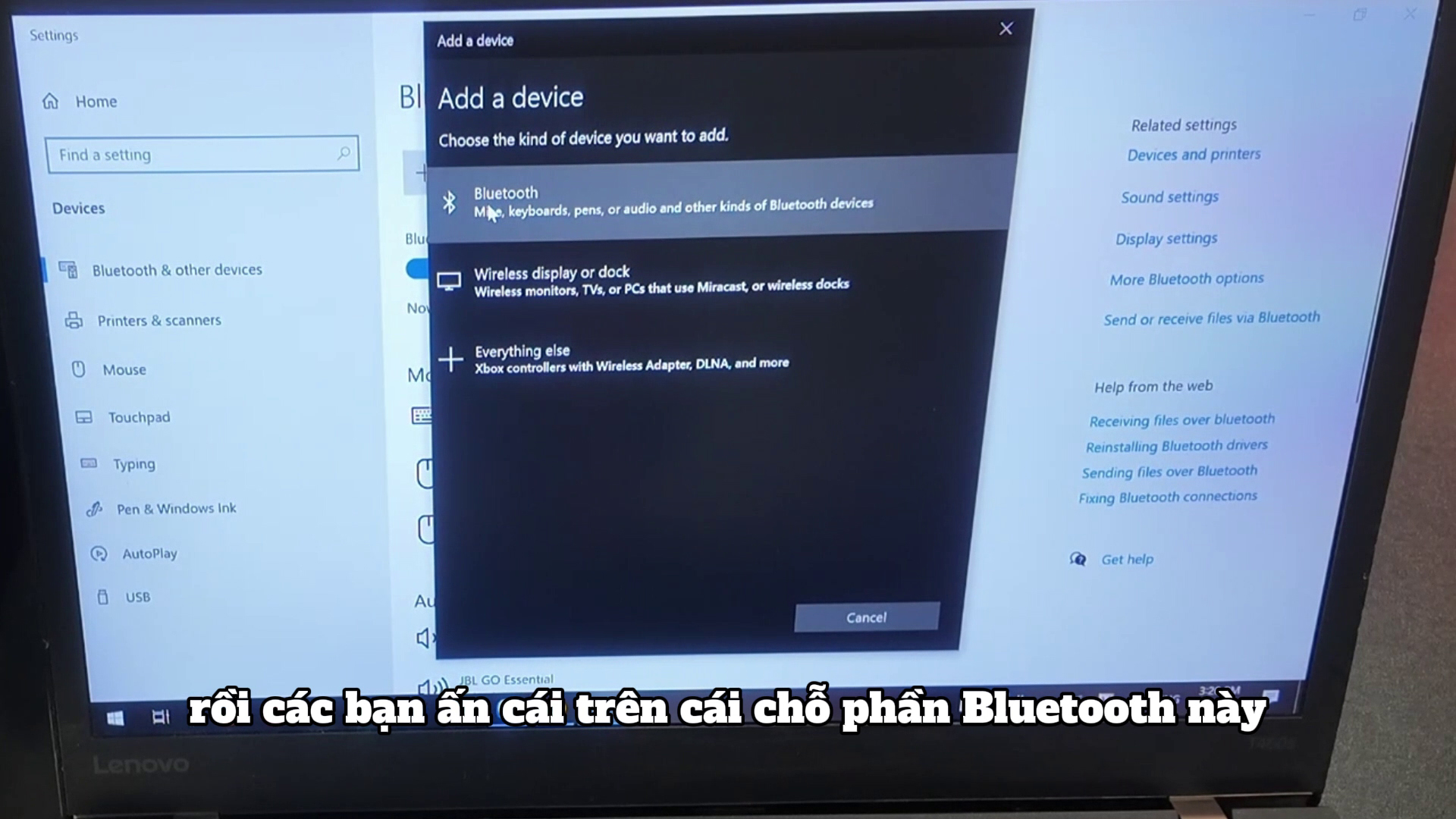 Rồi chọn Bluetooth như hình