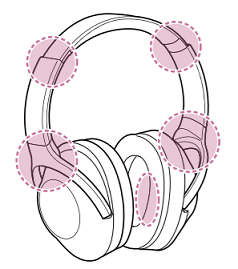 Bạn thường có thể tìm thấy tên mẫu máy và số sê-ri trên tai nghe choàng đầu hoặc bên trong đệm tai, như trong hình dưới đây