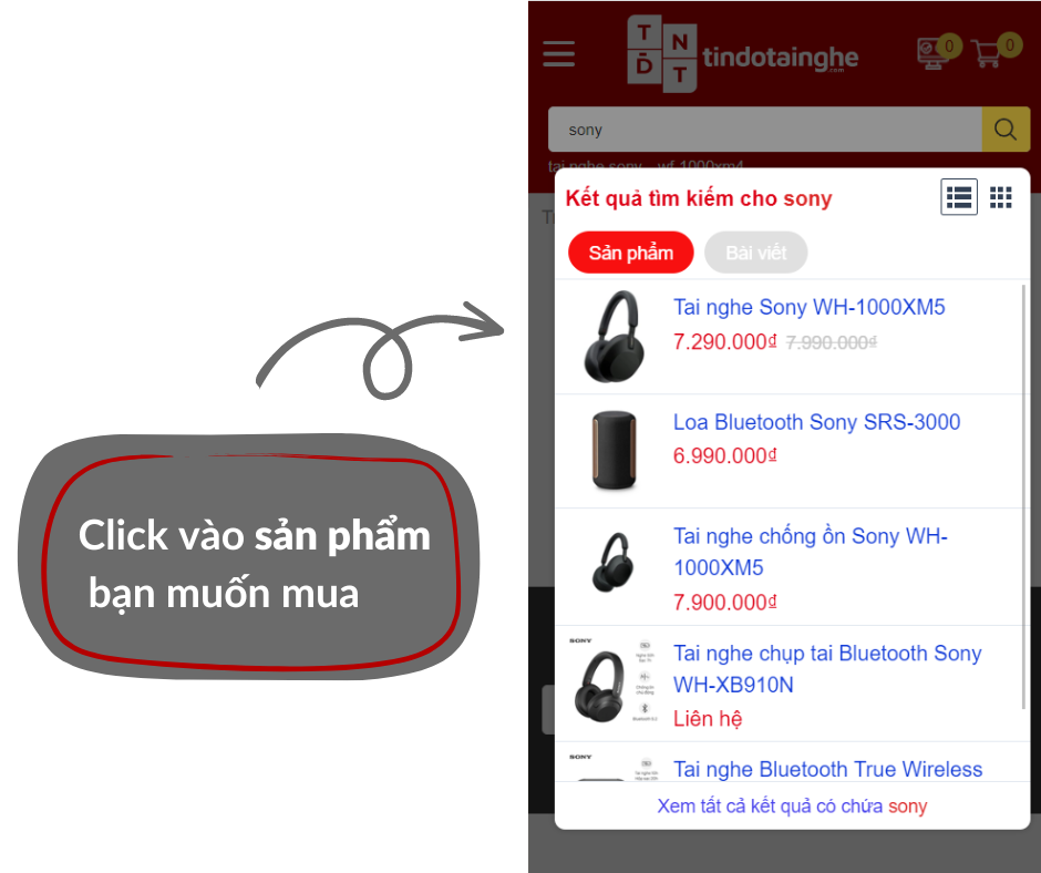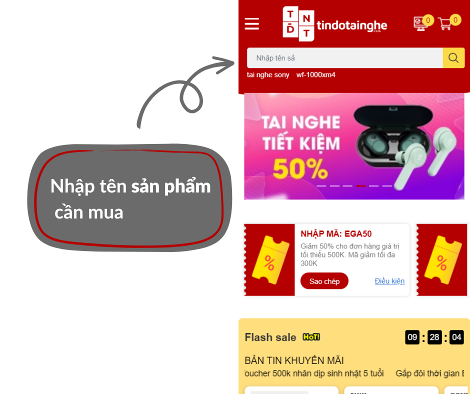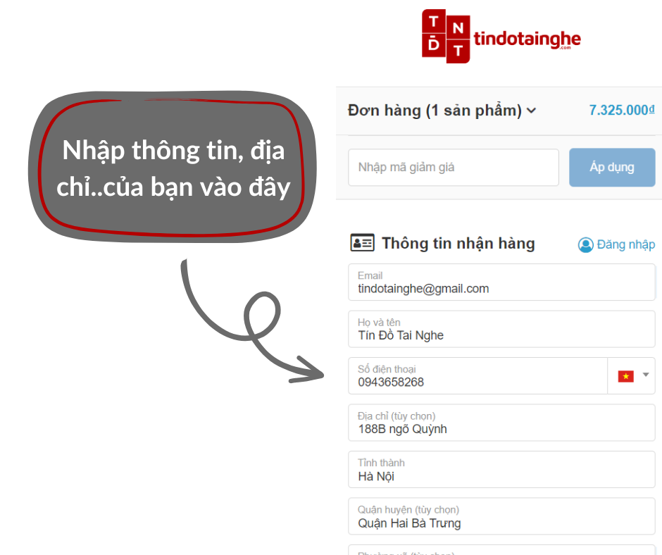 Cách 2: Đặt mua hàng online trên website tindotainghe.com: