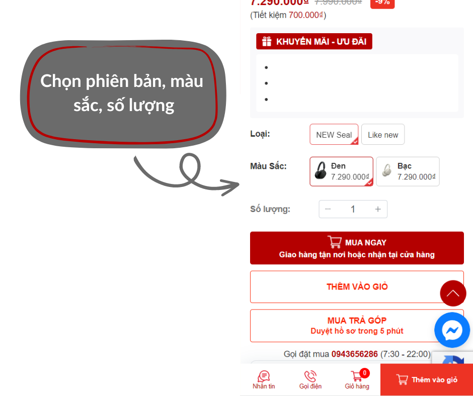 Chọn phiên bản màu sắc (nếu có) và chọn số lượng