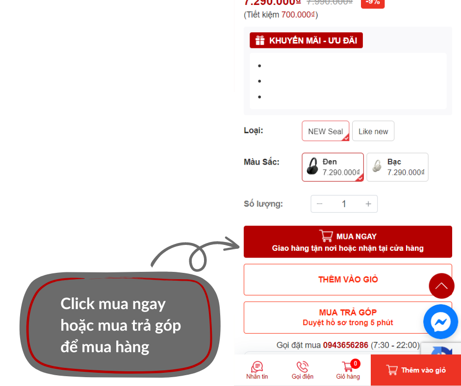 Bước 2: Đặt mua sản phẩm sau khi đã tìm & chọn được sản phẩm