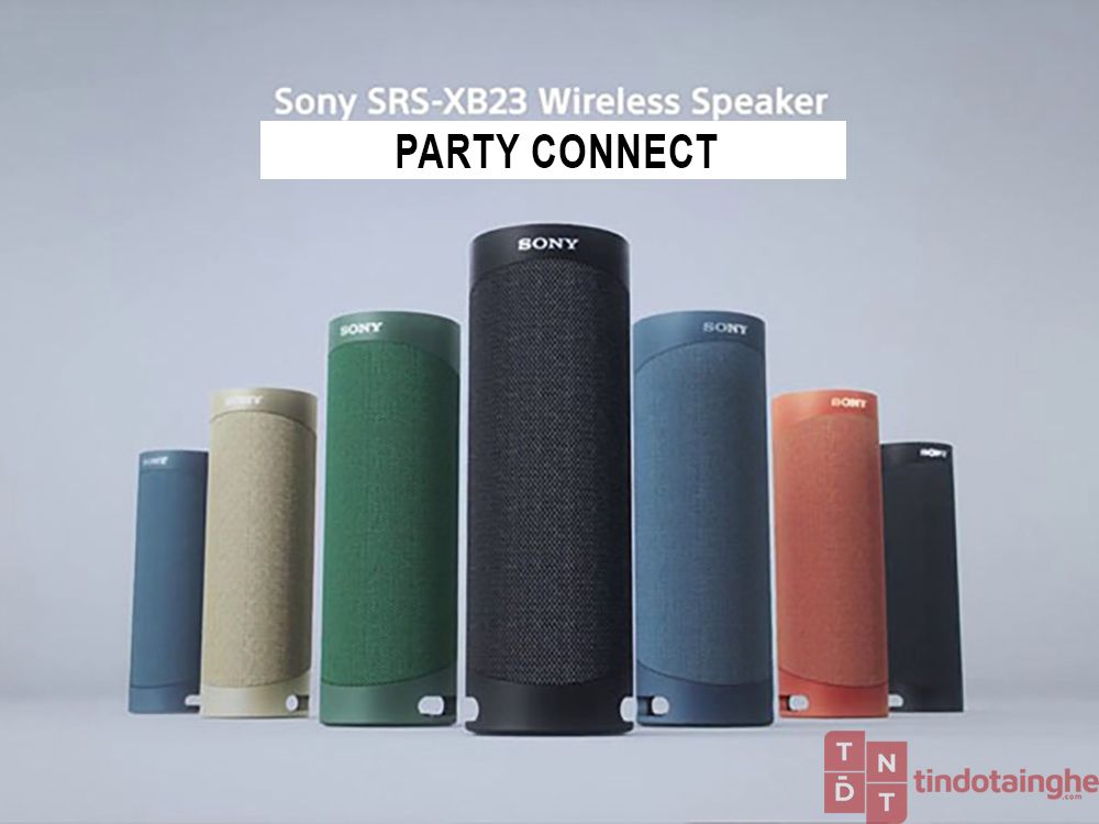 Tính năng Party Connect giúp kết nối đồng bộ 100 loa (SRS-XB23, SRS-XB33, SRS-XB43) qua Bluetooth kết nối với nhau một cách dễ dàng, đồng bộ hoá âm thanh và giúp người dùng tạo ra không gian âm nhạc tuyệt vời. Người dùng có thể chọn các bài hát yêu thích, tăng âm lượng, hay chỉnh sửa cài đặt âm thanh trên nhiều loa cùng lúc bằng ứng dụng Sony Music Center.