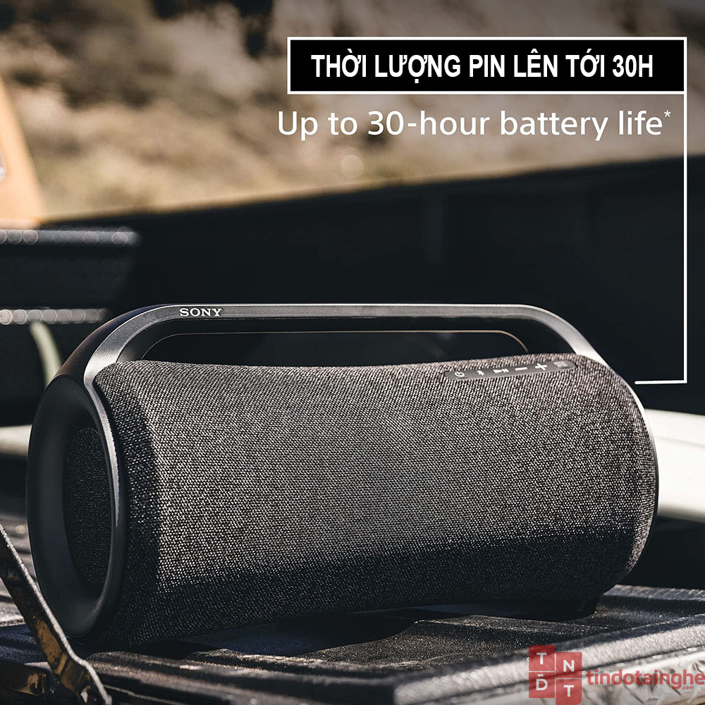 Một trong những yếu tố quan trọng của loa di động là thời lượng pin. Sony SRS-XG500 không làm người dùng thất vọng khi sở hữu thời lượng pin lên tới 30 giờ sử dụng liên tục, đảm bảo bạn không phải lo lắng về việc hết pin giữa chừng trong những bữa tiệc hay chuyến đi dã ngoại.
