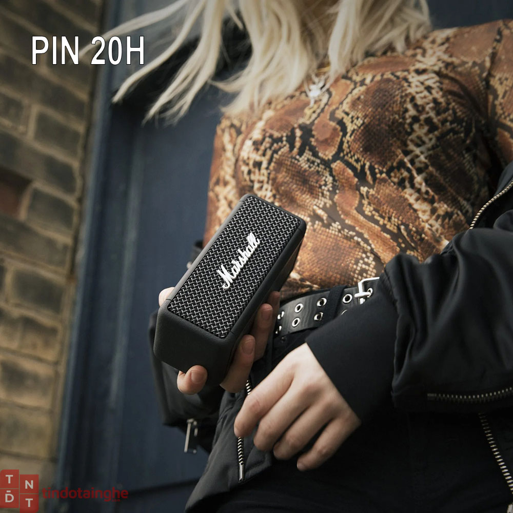 Marshall Emberton có thời lượng pin lên đến 20 giờ và chỉ cần sạc trong 20 phút, bạn có thể sử dụng loa trong vòng 5 giờ. Điều này giúp cho người dùng có thể sử dụng loa một cách linh hoạt và tiện lợi, mà không phải lo lắng về thời gian sạc và sử dụng sản phẩm.