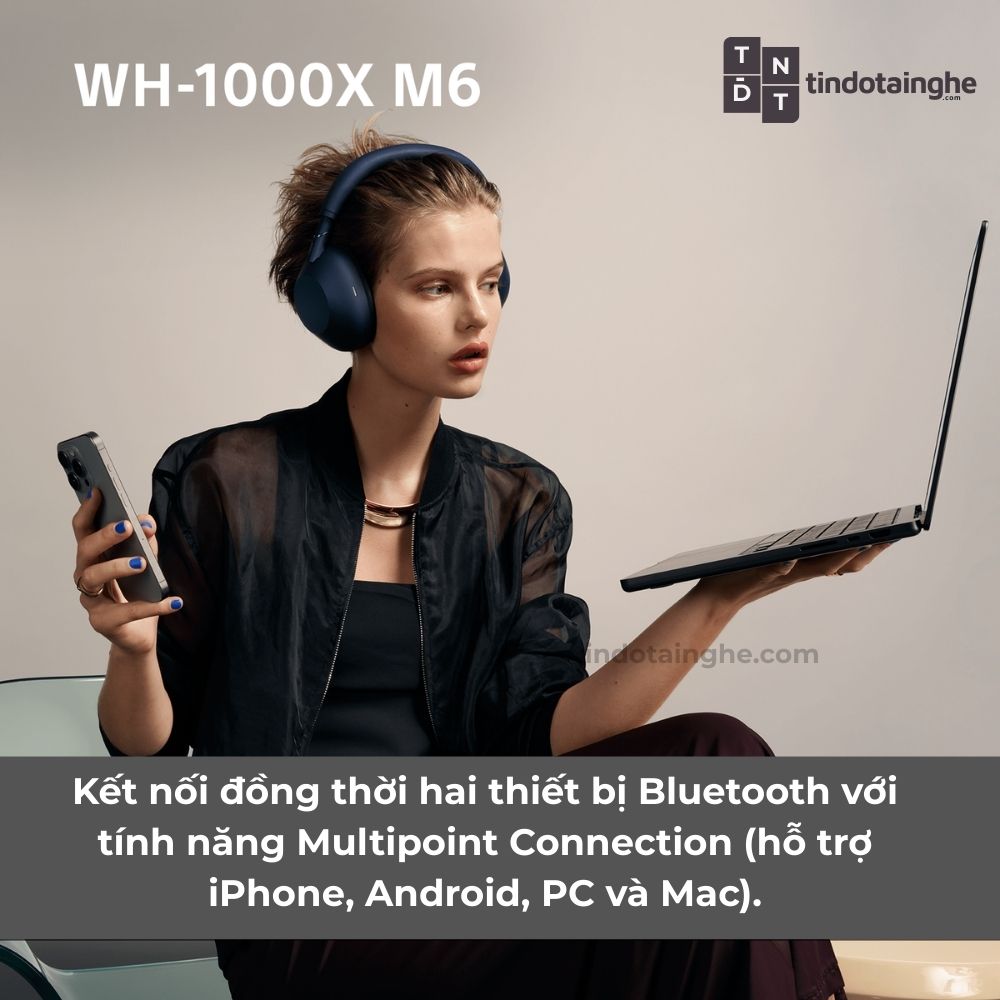 WH-1000XM6 hỗ trợ kết nối đa điểm, cho phép người dùng kết nối cùng lúc với hai thiết bị và chuyển đổi dễ dàng giữa chúng: